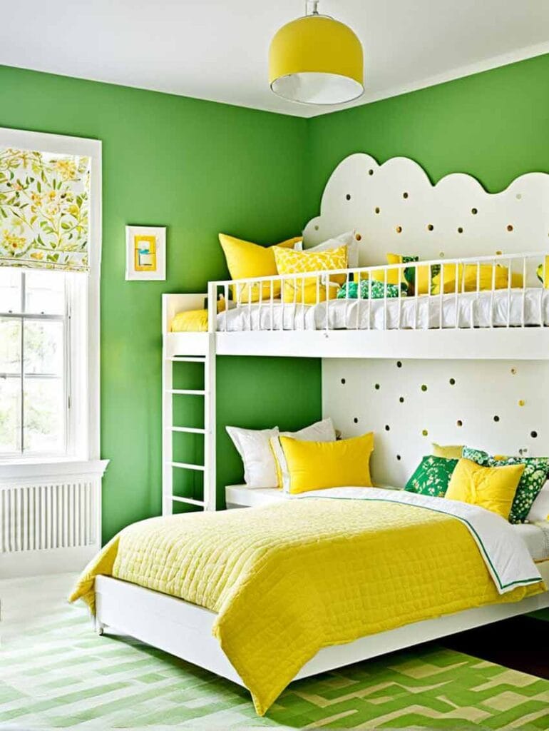 Yellow and green bedrooms are a great choice for girls who are creative and love to explore and create!