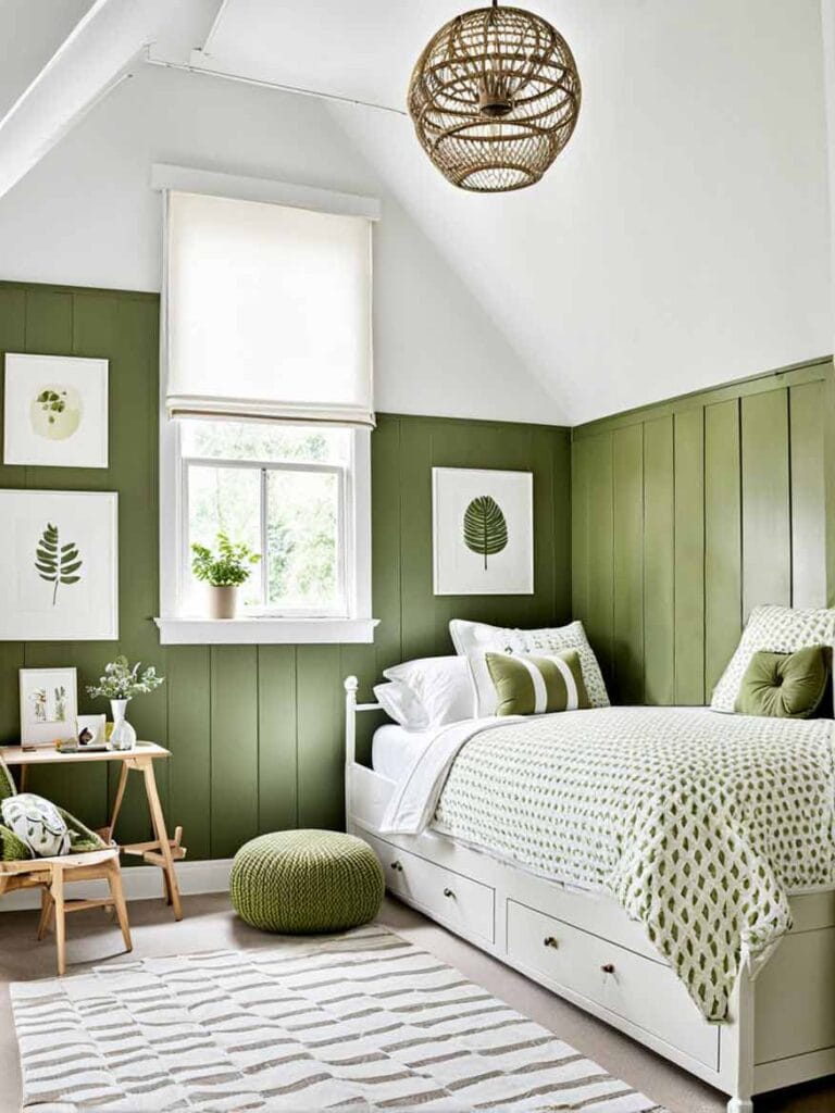 Just like the sage green bedroom ideas above, olive green bedrooms can also be elegant and refined and are often a great choice for teen girls’ bedrooms.